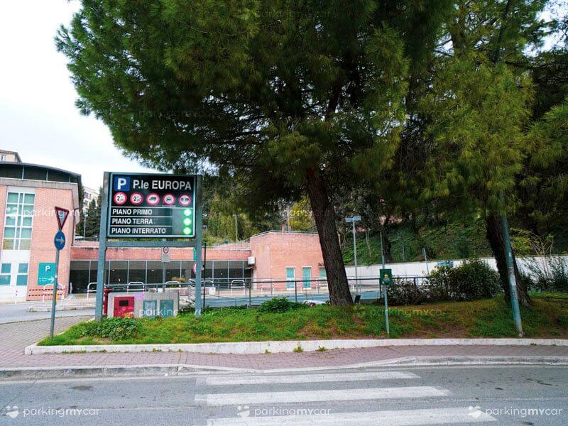 Subito fuori dal parcheggio è ubicata la fermata dell’autobus P. Europa, da cui circolano le linee 102, 103, 115, 117, E, E003, G, H.